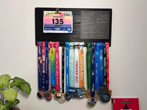 Präsentiere deine sportlichen Triumphe mit unserer exklusiven „Finisher Wall“-Halterung XL! Jede Medaille, Startnummer und persönliche Bestzeit erhält ihren verdienten Platz. Ein ideales Geschenk für Marathonläufer und Triathleten.