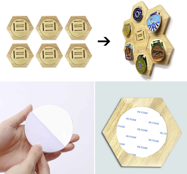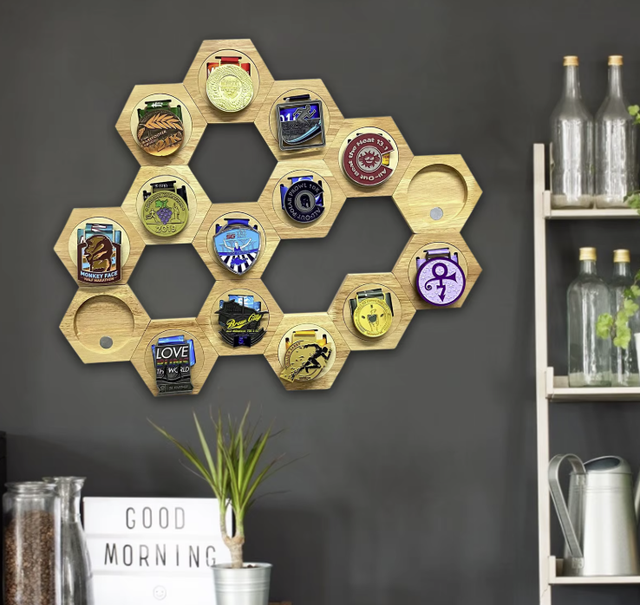 Präsentiere deine hart erkämpften Finisher-Medaillen stilvoll und übersichtlich mit unserem modernen Medaillen-Display im eleganten Hexagon-Design!